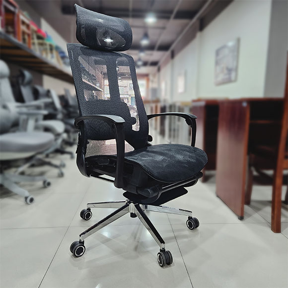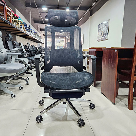 Chất liệu: Khung đệm tựa nhựa căng vải lưới; Tay nhựa; Chân thép mạ