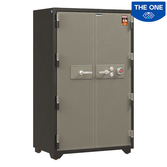 - Két sắt chống cháy KS500K2C1 dạng đứng có hai cánh mở có 2 khóa chìa, 1 khóa mã, 2 tay nắm.